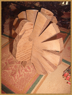 Out of 1/2 inch wood, cut one each of pattern, see below. Sand and stain.