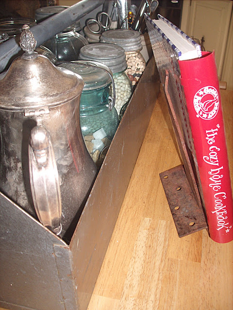 How about using a great old hinge for a cook book rest?