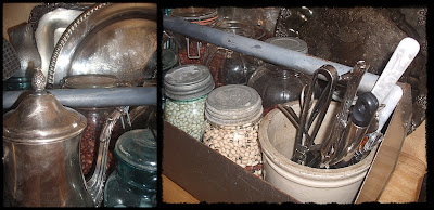 I got this wall hanging at a sale a couple years ago, and the pots as a gift...they went together perfectly and hung on the wall for quite a while...I guess I wanted a change, more towards the industrial chic!!