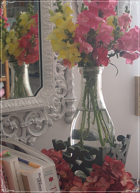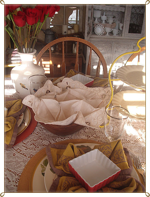 Usually they are in the bedroom in the hutch but since they haven't been out for a few Chirstmas's I decided let them play this year, where everyone can see them.