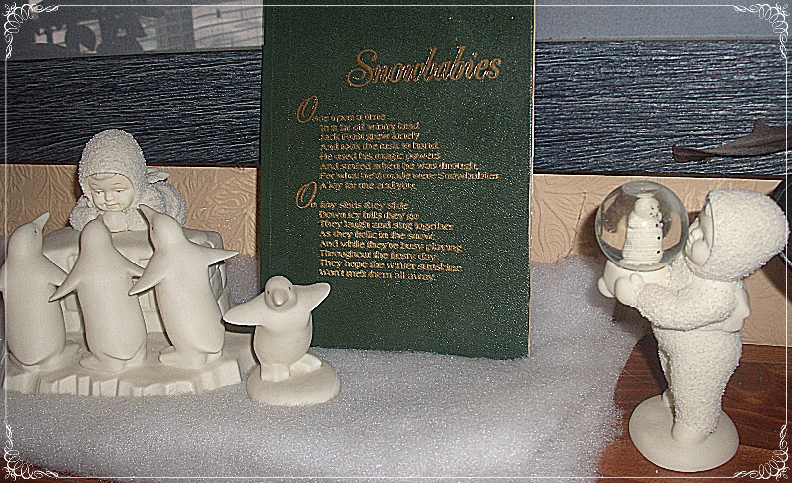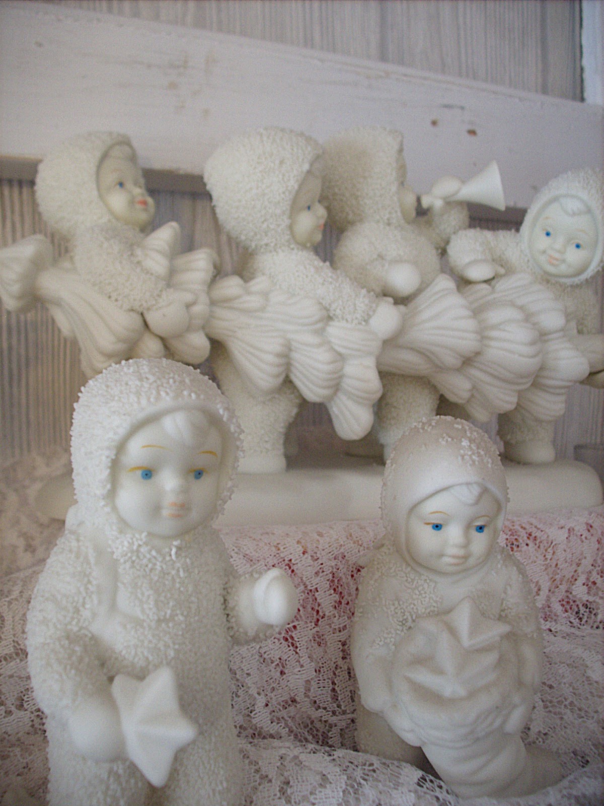 Years ago my aunt bought me a Dept 56 Snow Baby, she continued to buy me one every Christmas, then my other aunt joined in. Soon they became a favorite and I too added to the collection.
