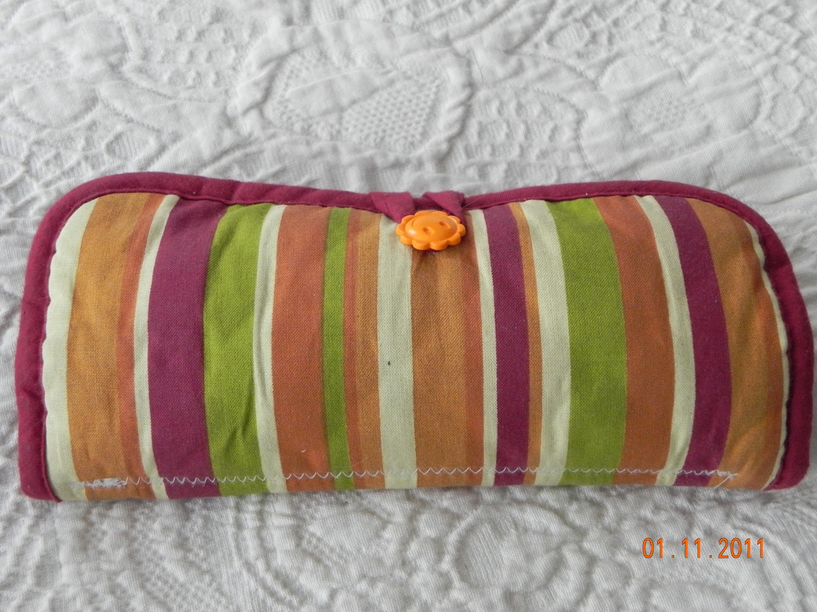 I make something similar. I find the long potholders with the loop on the narrow end, fold in thirds, add a button, sew the bottom third front to back and it makes a great case for glasses, small cosmetics, etc. They were a hit with coworkers last year. There's so much we can do with these potholders. I love your idea and might have to try this. Thanks for sharing your great idea!!!