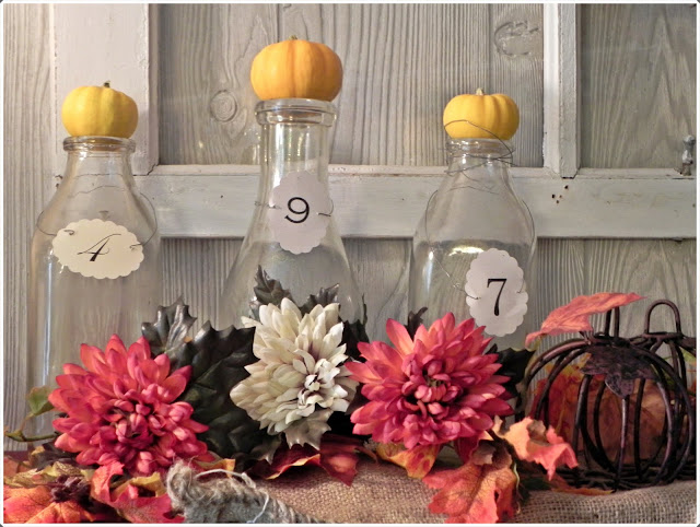 Shannon, I always love to see what you do with your tool box. The glass bottles with the # labels and the tiny pumpkins on top are such a creative addition to your pretty mantel. You have such a flair for putting unique items together to make a beautiful display. laurie