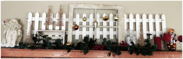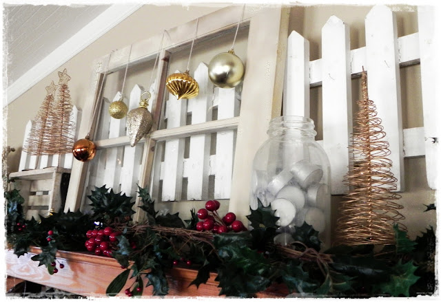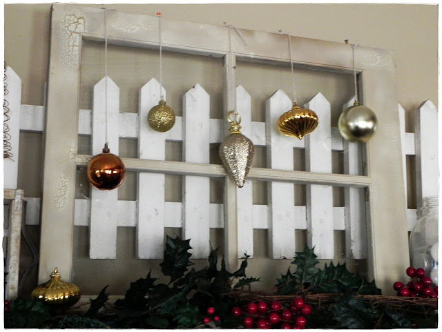 I really enjoyed your beautiful Christmas, dear lady! I love how you used the old window as part of your mantel decor! The Christmas ornaments look so pretty hanging on the window! Ohhh...and the picket fence is awesome! I also like the golden wire Christmas trees...very pretty! A beautiful mantel...a sooo many pretty Christmas vignettes...thank you for sharing them with us!