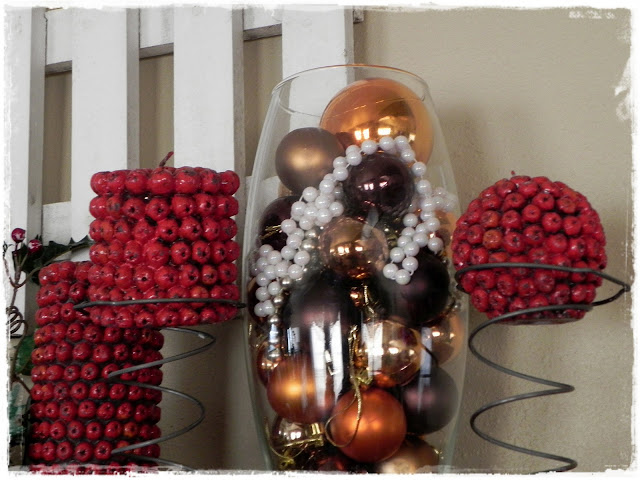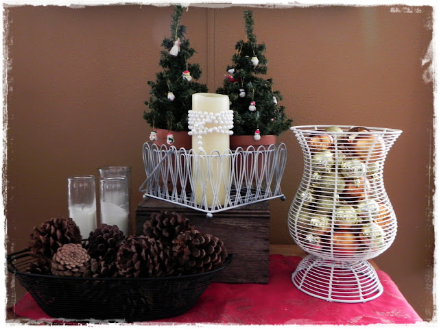 A couple more vignettes to show you, Usually I am fairly satisfied with my Christmas decor however this year....it all seems to fall short. I have serious Pinterest envy! There are so many beautifully decorated homes. Perhaps it is also having my son out of the home for the first Christmas and my daughter having signed a lease that will have her moving right after the holiday season that has me a little blue rather than red and white.