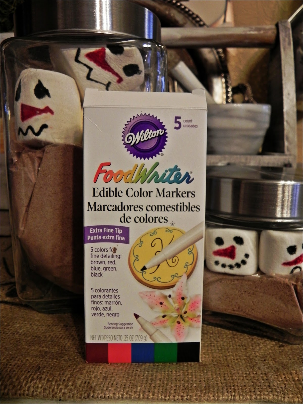 I used the Wilton food safe markers to draw faces on standard size and jumbo marshmallows.