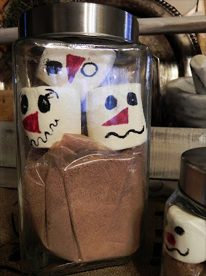 Quick and easy cocoa snowmen...in a jar! I saw this cute idea on Pinterest and had to copy it!!