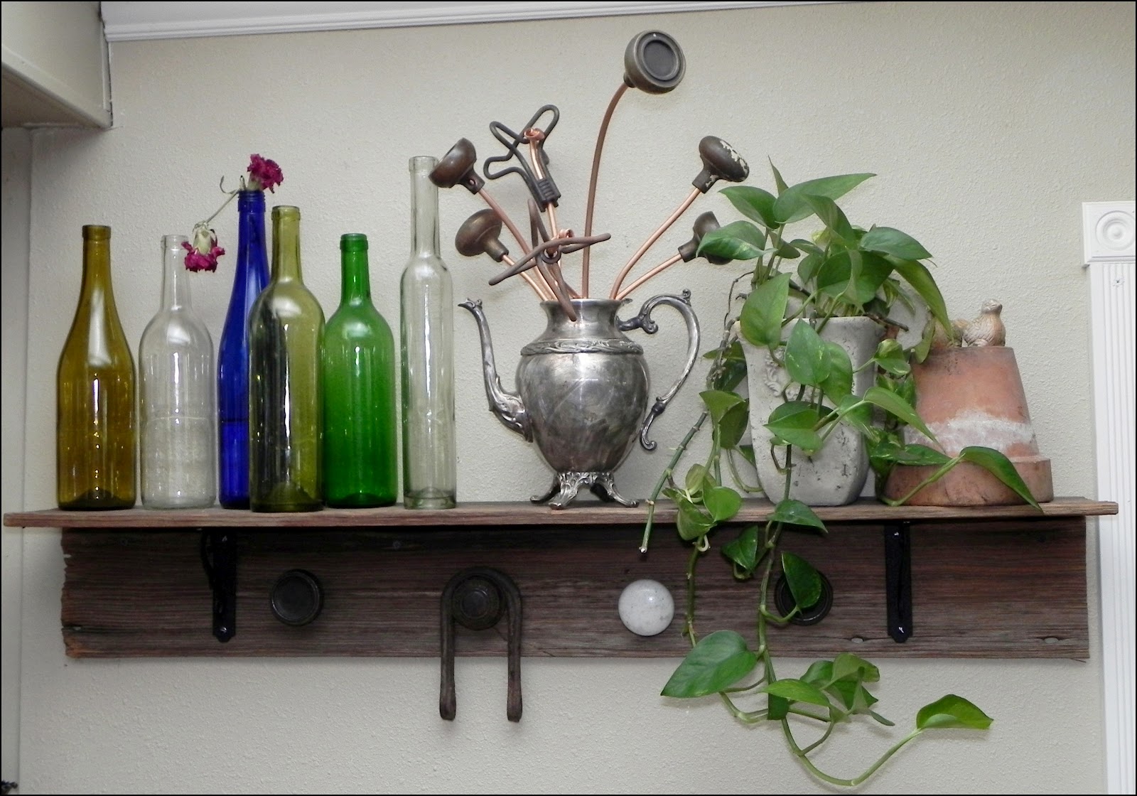 I'm chucklin' ...because just yesterday I was thinking about the shelving in my bedroom and how I wanted to add something vintage,industrial, quirky to my shelves. My eyes landed on a bowl of doorknobs and I was thinking 'how can I incorporate this bowl of doorknobs?' (because the bowl won't fit on the shelf)...