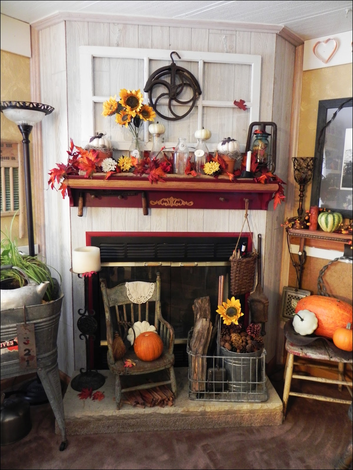 Great looking fireplace with your fall decor and all your vintage pieces. So cute.