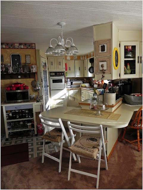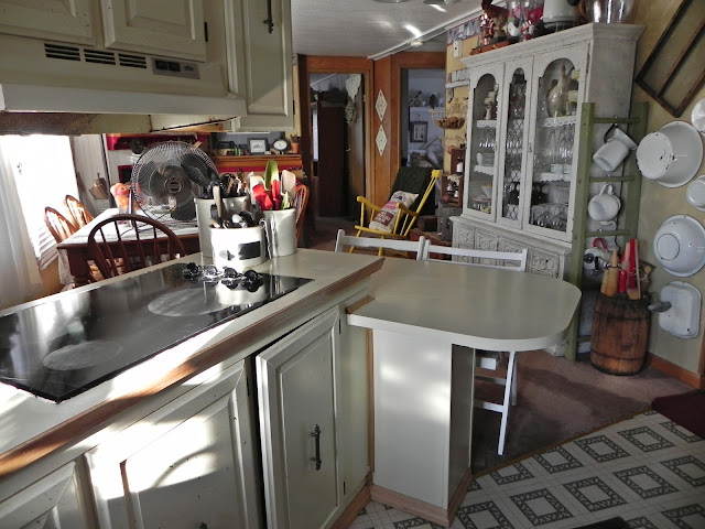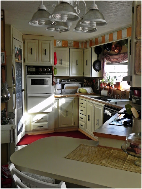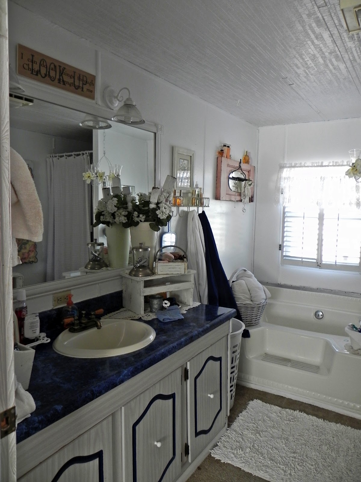 Our mobile home has two bathrooms, this is the small one which is the most used. It too has undergone a few transformations, I am glad to say I do not have photos of all of them because frankly, it has looked awful!