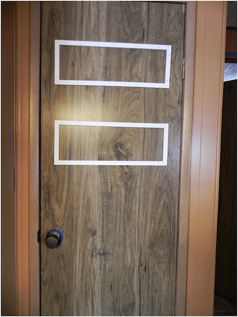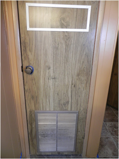 Now, it has been replaced with a tile look wall board. Sold in 4X8 sheets at most home improvement stores, these give a lot of options with one main draw back- nail holes. Wall board is not an easy fix for holes, the texture is usually smooth and putty stands out, then painting over the putty on a shiny surface doesn't present a very good look.