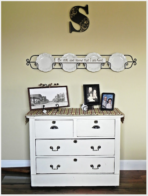 She is perfect! Even long enough to go over the pillows! Spotless and pristine she was tucked in a corner of a garage sale filled with rusty junk that first caught my eye. I bought an amazing piece of rusty gold which I will show you later but....here I was carrying this rust bucket and a beautiful white spread, trying not to get it dirty! Sounds exactly like my style and personality, the contrast of flaking dirty patina next to crisp winter white.