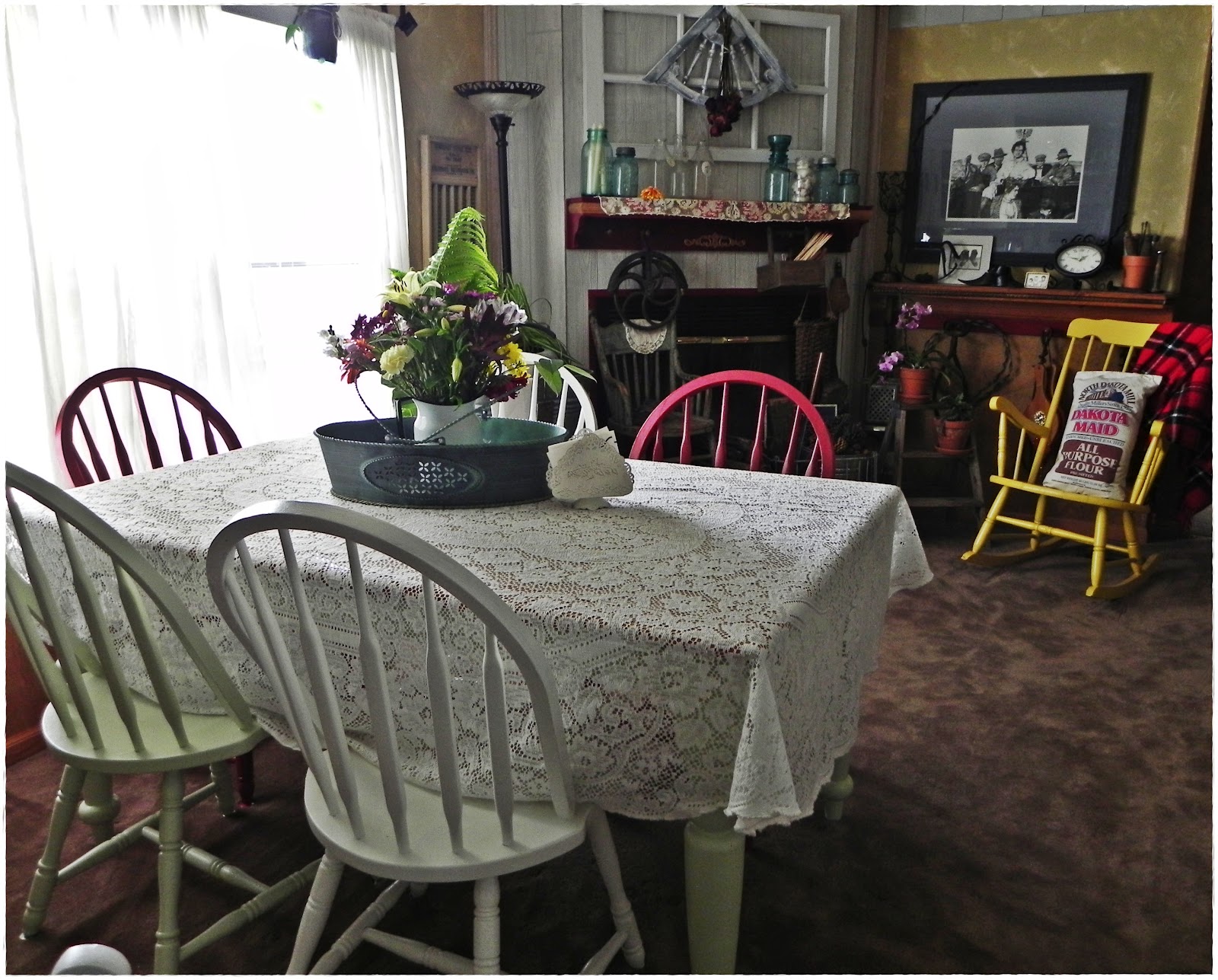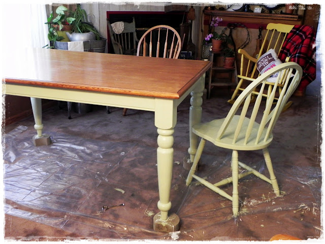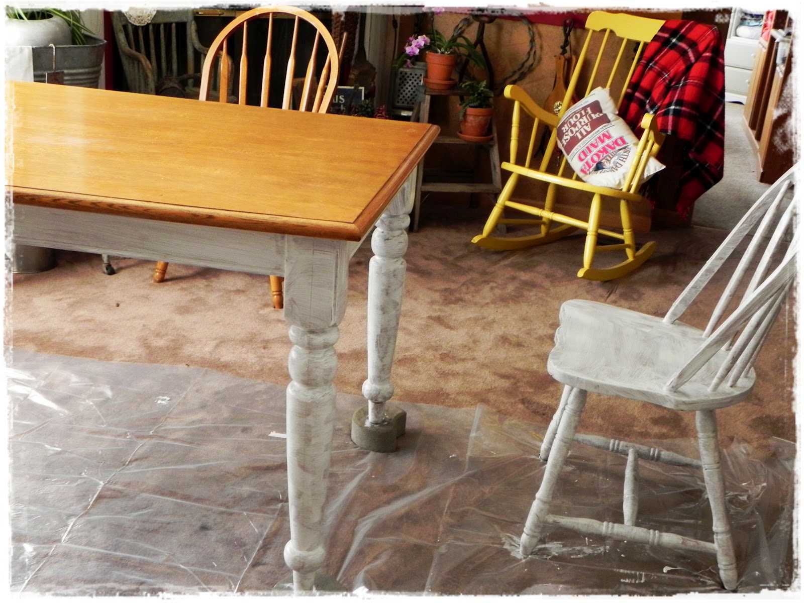 She did not speak to him for a time (3 hours!), but then felt guilty and invited the prince to go to some garage sales with her. They did and things went back to normal, however deep inside the sweet princess was still slightly miffed so the next day to soothe her wearied soul, she pulled out her Romantic Home magazine and came across a photo of a painted dining room set.