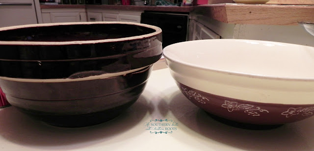 Everything in her kitchen had it's place. She would take every dish out once a year and clean them, no matter if they had been used at all. Things were tucked neatly away, I vaguely remember these on the top shelf, at least the brown one.