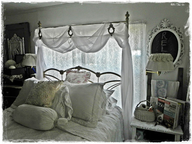 But I think perhaps juxtaposition flea market style fits best. I love both the soft, tranquil whites as well as the rustic metals. If I had to chose over a beautiful vintage linen or a rusty bucket....I would stand there for hours.