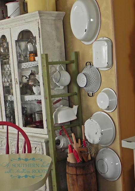 This is where my love of the 30's, 40's and 50's style shows, not the modern side but the old school basics like enamel ware. Again mixed with the modern- juxtaposition.