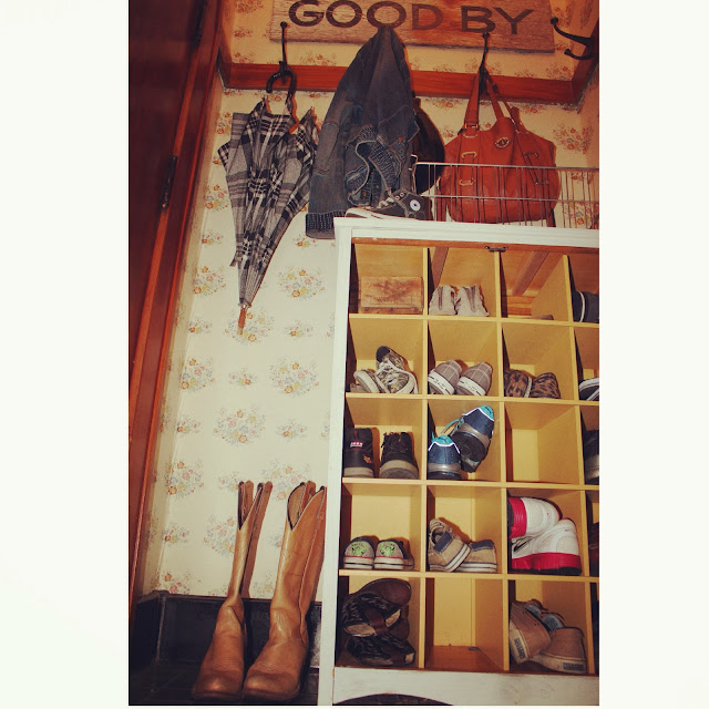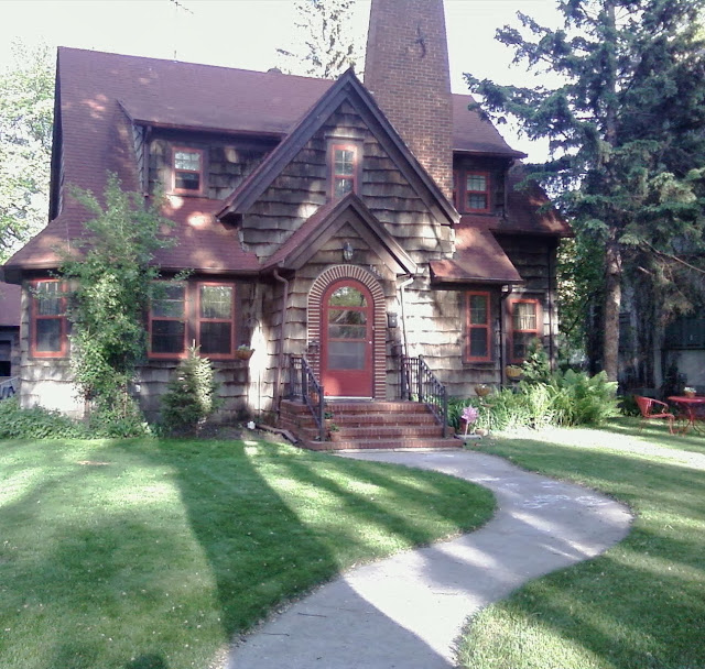 "The outside is the original shakes which gives it it's wonderful character! My husband and I are very fortunate to live in this neighborhood and in such a charmer of a house! Most of the wallpaper is kept from when his Grandma and Grandpa lived here {which I LOVE} we have only remodeled a couple of rooms. It reminds me of a little red riding hood cottage, it's perfect because the part of me that wants to be in the country has a house that is country brought to town!"
