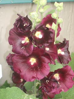 Hollyhocks- Alcea rosea tall blooms, will self see